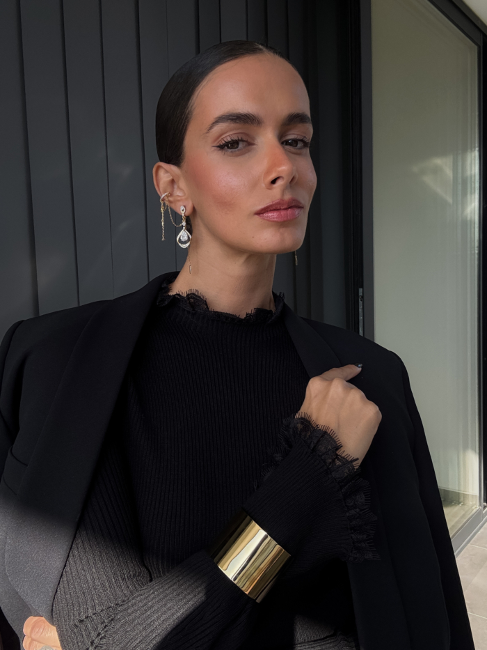 Or you can tap on the extra chain piece: a long, light add-on with a tiny drop that shifts the whole energy. More movement, more attitude, more you.
