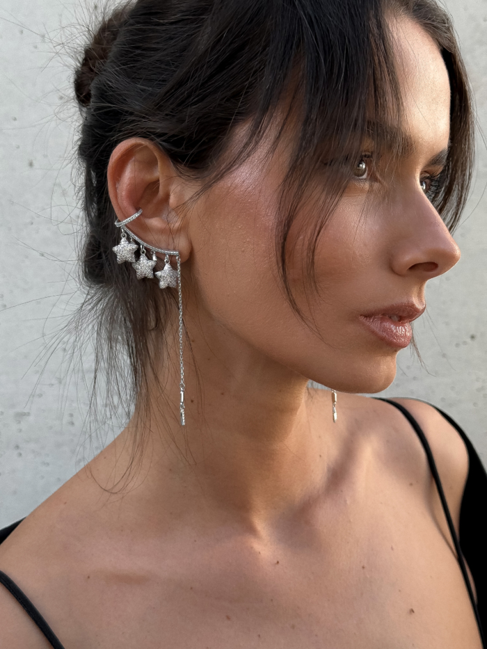 An earcuff designed to fake the look of many piercings with just one.