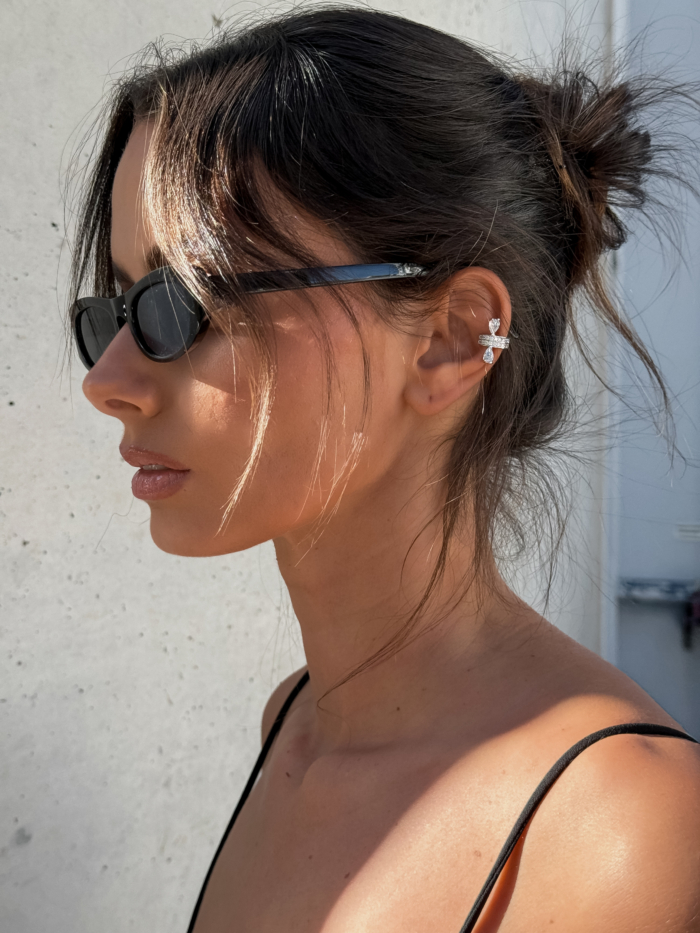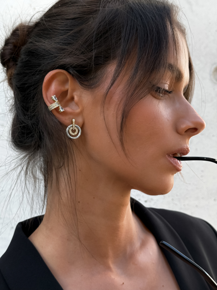 It sits on the ear with confidence, adding structure and shine without needing a pair.