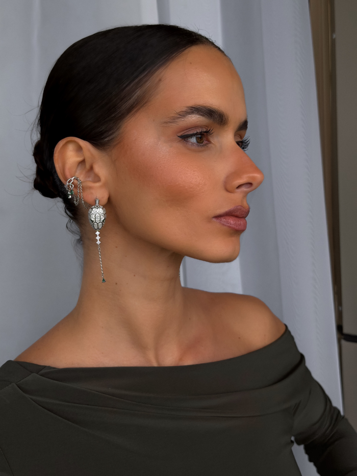 The earcuffs connect with a screw-on system, allowing you to wear them or remove them depending on your mood. One base. Multiple versions. Always intentional.