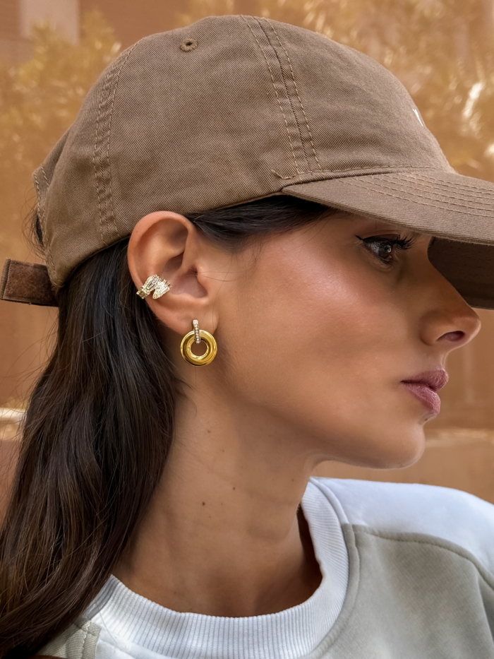 Your hoops, redefined. Clean lines, heavy shine, and that sculpted edge that feels like quiet armor. Built in stainless steel with a detachable zirconia ring that locks the look. Cool, confident, and ready for whatever the day throws at you.