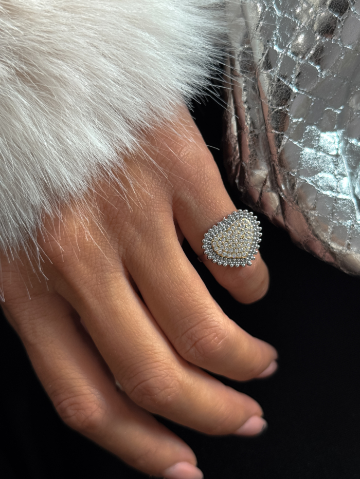 Stainless steel in gold and silver, shaped into a sleek oval that feels like a quiet secret on your hand.