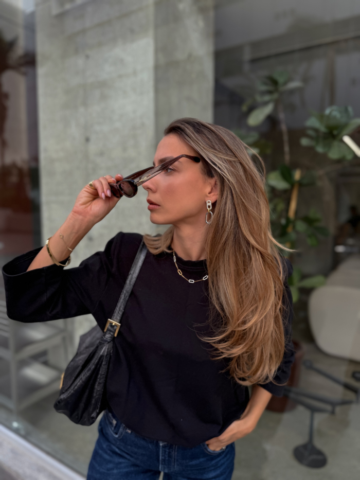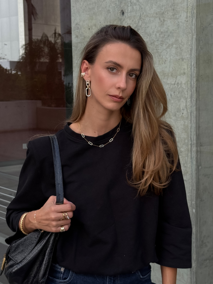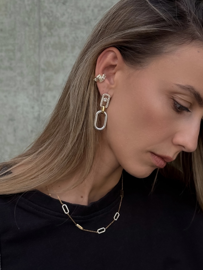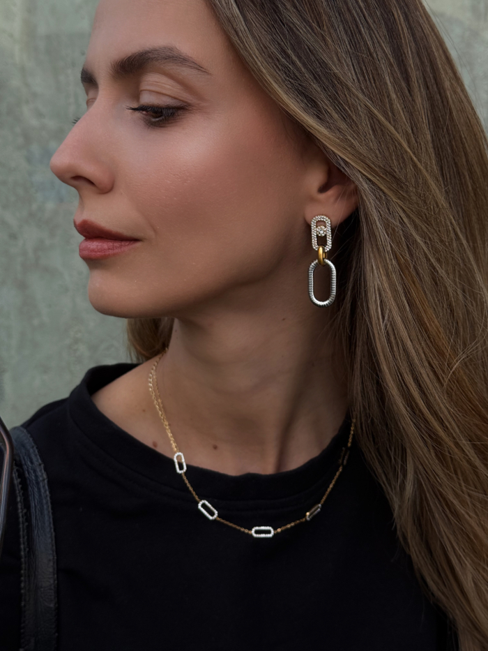 Sharp lines, bold links, built in gold stainless steel. Silver details that give it that clean contrast. It’s the kind of piece that works with everything, from jeans and tees to night looks that mean business.