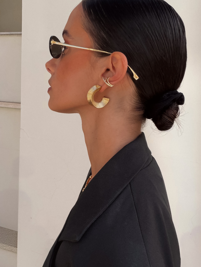 It works with everything. From bold statement earrings to tiny studs, or worn entirely on its own for a refined finish.