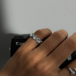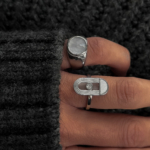 Let it sit on the pinky with bare hands and short nails. Add one bold signet on the other hand and stop there. Works with a white tee, a sharp blazer, or holding your camera like it owns the frame.