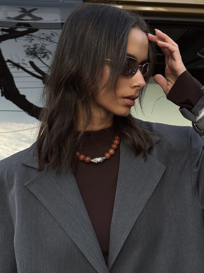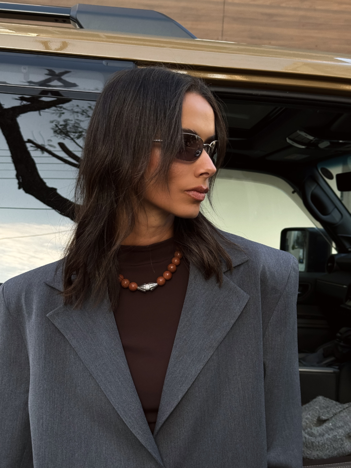 Wear it solo on bare skin or over a tee, under a blazer, with knits, with nothing else competing. It sits strong on its own and never asks for backup.